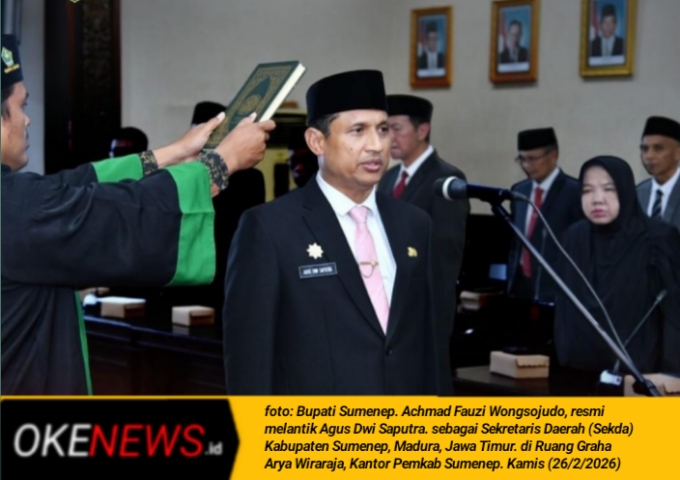 OKENEWS.ID, SUMENEP – Bupati Sumenep. Achmad Fauzi Wongsojudo, resmi melantik Agus Dwi Saputra. sebagai Sekretaris Daerah (Sekda) Kabupaten Sumenep, Madura, Jawa Timur. di Ruang Graha Arya Wiraraja, Kantor Pemkab Sumenep. Kamis (26/2/2026).