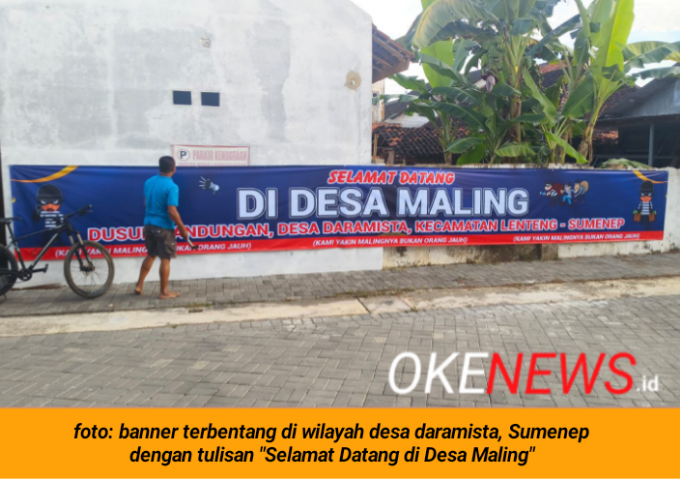 OKENEWS.ID, SUMENEP – Kepolisian Sumenep, Madura, Jawa Timur. Akan menindak tegas terkait pemasangan banner yang bertuliskan “Selamat Datang di Desa Maling” di wilayah Desa Daramista, Kecamatan Lenteng, Sumenep.