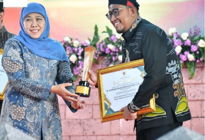 OKE NEWS, SUMENEP-Bupati Sumenep Achmad Fauzi Wongsojudo mendapat penghargaan dari Gubernur Jawa Timur, Khofifah Indar Parawansa atas kepeduliannya terhadap ketahanan pangan Jawa Timur 2023 katagori bidang Pemanfaatan Lahan Marginal.