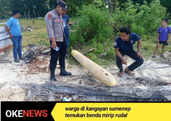 - Sumenep, OKENEWS.ID – Warga Dusun Aenglombi, Desa Torjek, Kecamatan Kangayan, Pulau Kangean, Kabupaten Sumenep digegerkan dengan penemuan benda asing yang diduga mirip torpedo pada Senin (20/4/2026) sekitar pukul 14.40 WIB.