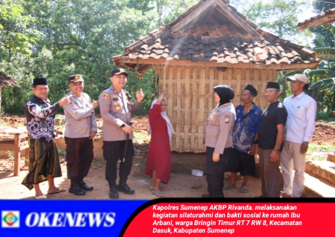 OKEMEWS.ID, Sumenep – Kapolres Sumenep AKBP Rivanda, S.I.K., melaksanakan kegiatan silaturahmi dan bakti sosial ke rumah Ibu Arbani, warga Bringin Timur RT 7 RW 8, Kecamatan Dasuk, Kabupaten Sumenep, pada Kamis, (31/7/2025)