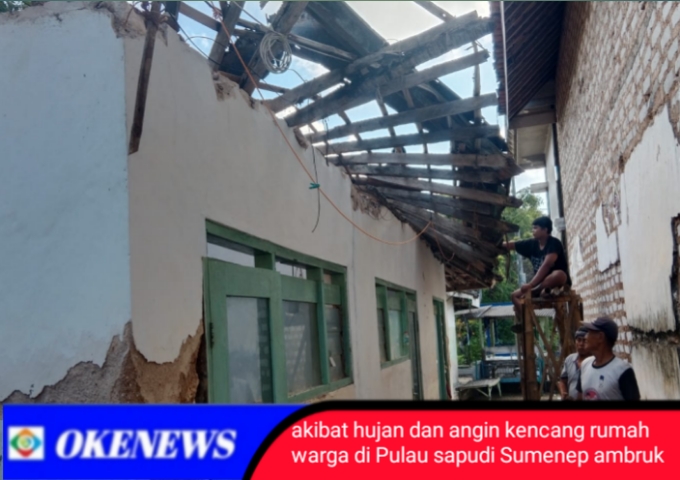 OKENEWS.ID, SUMENEP – Akibat diguyur hujan yang disertai angin kencang rumah milik Sa’edah (64), warga Desa Kalowang, Kecamatan Gayam, Pulau Sapudi, Kabupeten Sumenep, Madura, Jawa Timur. ambruk. Senin, dini hari sekitar jam 02.00 (7/7/2025).