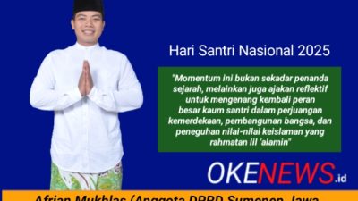 OKENEWS.ID, SUMENEP–Dalam rangka memperingati Hari Santri Nasional tahun 2025, Anggota DPRD Sumenep. Afrian Mukhlas, mengajak masyarakat untuk menjadikan momen ini sebagai tonggak kebangkitan kaum santri dalam berkontribusi bagi kemajuan bangsa….